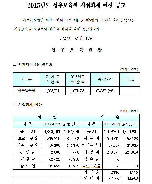 19-03-28 11:04 2015년 시설회계 예산 공고 페이지 정보 작성자 성우보육원 댓글 0건 조회 5,214회 본문 2015년 시설회계 예산 공고 목록 댓글목록 댓글목록 등록된 댓글이 없습니다.