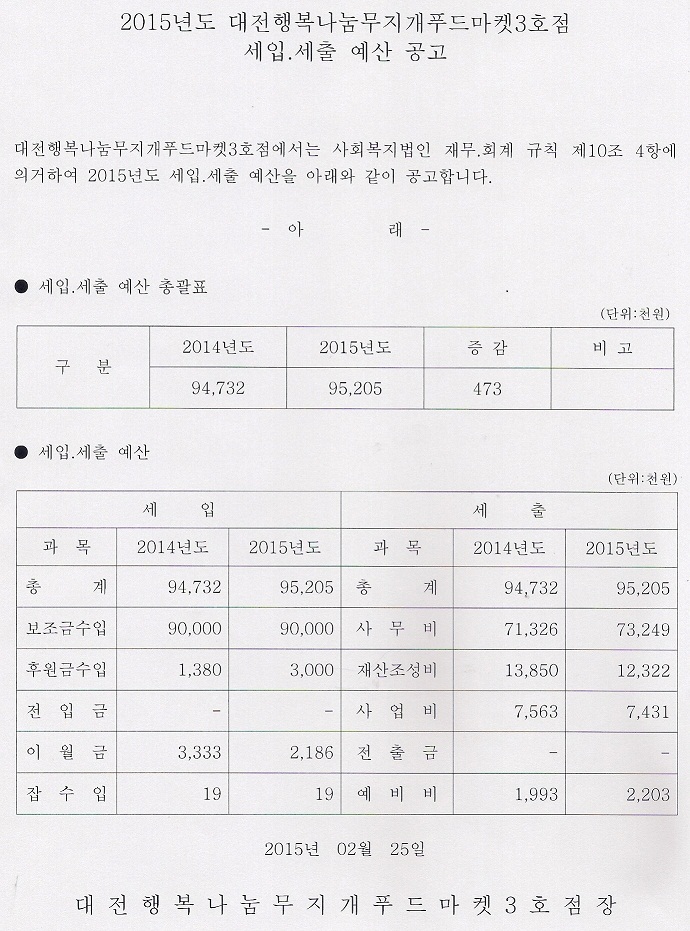19-03-28 11:04 대전행복나눔무지개푸드마켓3호점 2015년도 세입.세출 예산 공고 페이지 정보 작성자 성우보육원 댓글 0건 조회 4,758회 본문 대전행복나눔무지개푸드마켓3호점 2015년도 세입.세출 에산 공고 목록 댓글목록 댓글목록 등록된 댓글이 없습니다.