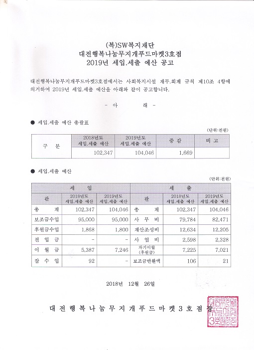 19-03-28 11:48 2019년도 대전행복나눔무지개푸드마켓3호점 세입.세출 예산공고 페이지 정보 작성자 성우보육원 댓글 0건 조회 5,072회 본문 2019년도 대전행복나눔무지개푸드마켓3호점 세입.세출 예산공고 목록 댓글목록 댓글목록 등록된 댓글이 없습니다.