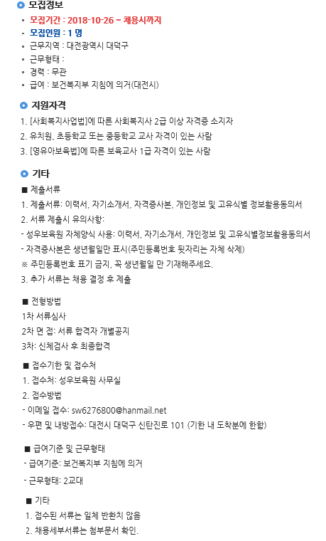 19-03-28 11:47 (재공고)생활지도원 모집 페이지 정보 작성자 성우보육원 댓글 0건 조회 5,092회 본문 (재공고)생활지도원 모집 목록 댓글목록 댓글목록 등록된 댓글이 없습니다.