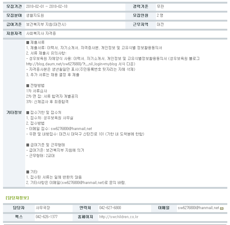 19-03-28 11:43 (공고)생활지도원 모집 페이지 정보 작성자 성우보육원 댓글 0건 조회 5,419회 본문 (공고)생활지도원 모집 목록 댓글목록 댓글목록 등록된 댓글이 없습니다.